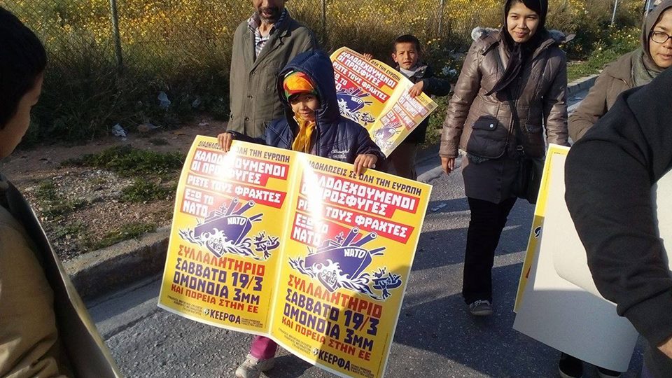 Η ΕΕ ετοιμάζει τη σύνοδο κορυφής για να προχωρήσει σε συμφωνίες που θα πνίγουν ακόμη περισσότερους στο Αιγαίο και στα ποτάμια. Στέλνει το ΝΑΤΟ και αναθέτει στον Ερντογάν να φυλακίζει μαζικά τους πρόσφυγες στη Τουρκία. Όλα αυτά τα στηρίζει η κυβέρνηση ΣΥΡΙΖΑ-ΑΝΕΛ την ώρα που παριστάνε την συγκινημένη για την προσφορά του κινήματος αλληλεγγύης…Ντροπή! Να πάρουν την απάντηση που τους αξίζει το Σάββατο 19 Μάρτη…
