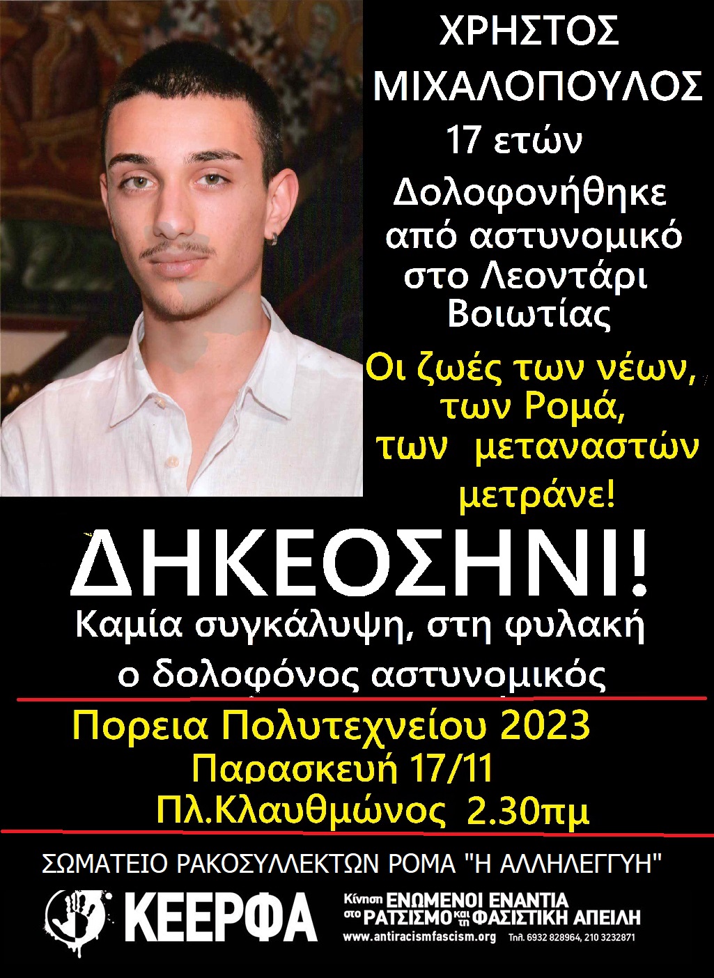 17/11 Πορεία Πολύτεχνείου. ΔΗΚΕΟΣΗΝΗ για τον Χρήστο Μιχαλόπουλο.