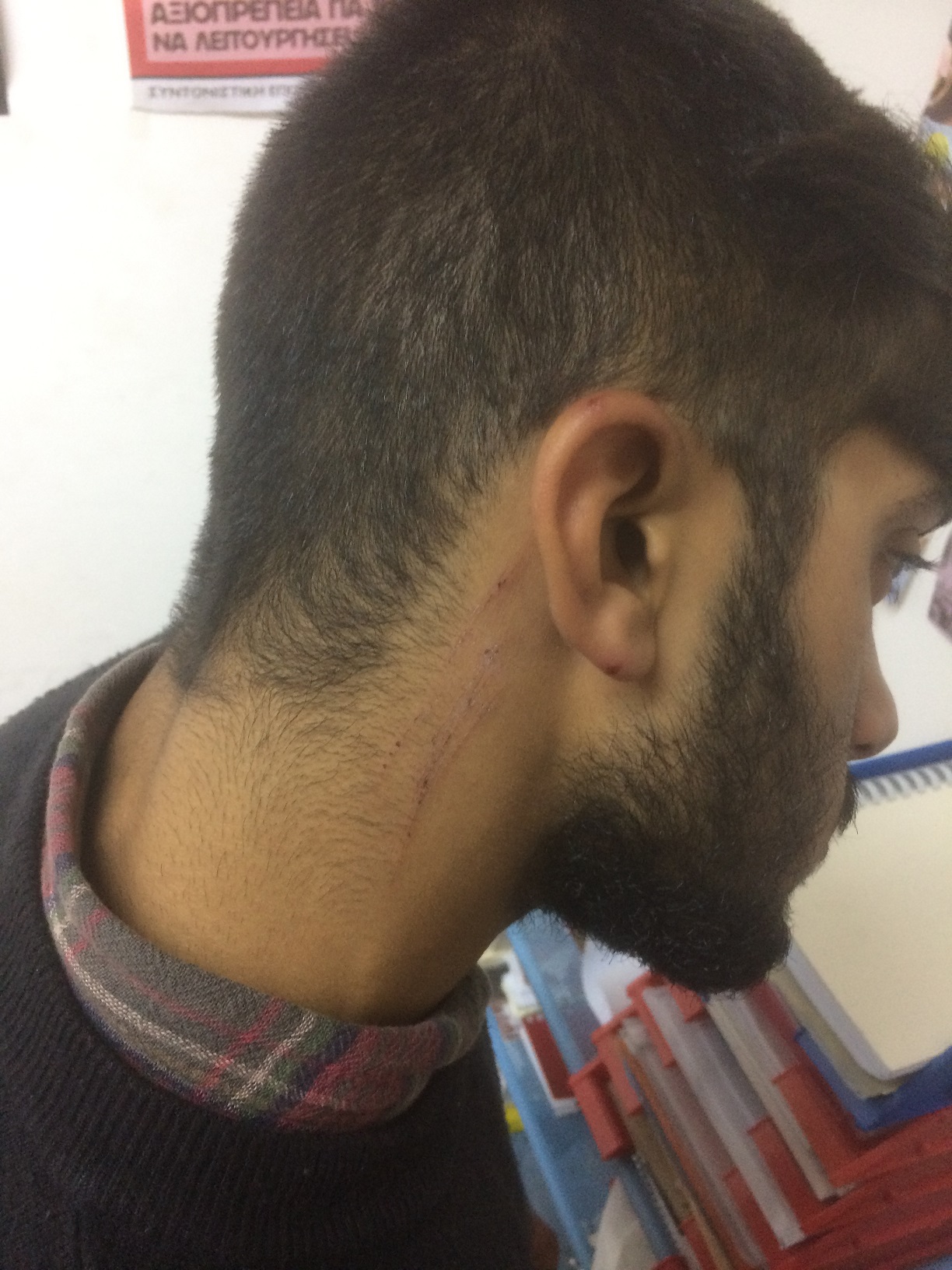 Ο οδηγός της μηχανής φώναξε “χτυπάτε “τώρα”. Ακολουθούσαν τέσσερις με μαύρα παντελόνια και στρατιωτικά άρβυλα, οι οποίοι επιτέθηκαν στο Μοχάμεντ. Ένας από αυτούς φώναξε “γαμώ τη μάνα σας που ήρθατε εδώ” και τον πλησίασε. Άλλος ένας τον χτύπησε με σιδηρογροθιά στο πίσω μέρος του κεφαλιού, παραπάτησε και στηρίχτηκε σε αυτοκίνητο.