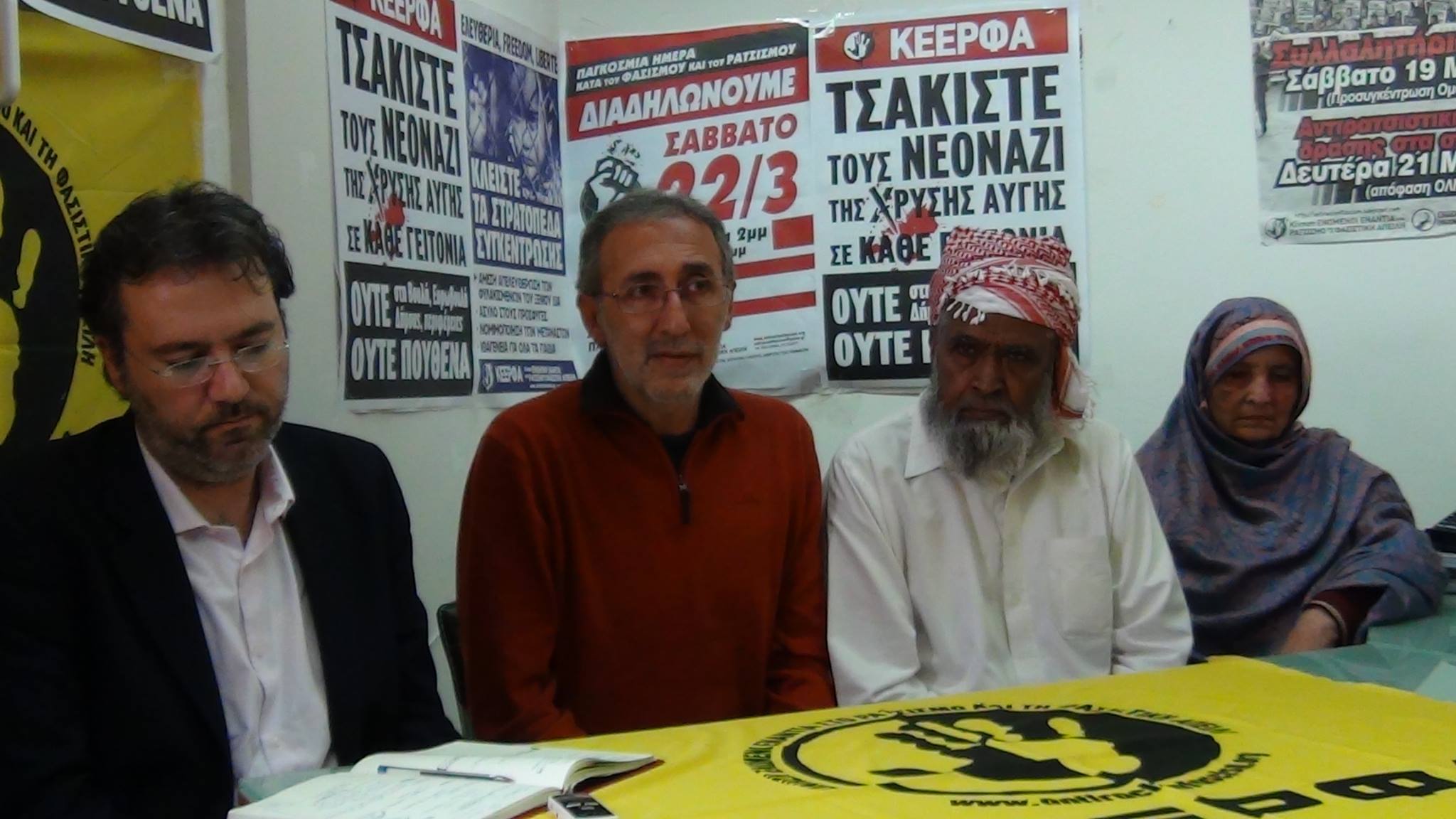 Δηλώσεις στη συνέντευξη τύπου ενάντια στην αυτεπάγγελτη προκαταρκτική εξέταση από την εισαγγελία κατά του Χαντίμ Χουσεΐν πατέρα του δολοφονημένου από χρυσαυγίτες στα Πετράλωνα 27χρονου Πακιστανού εργάτη Σαχζάτ Λουκμάν.